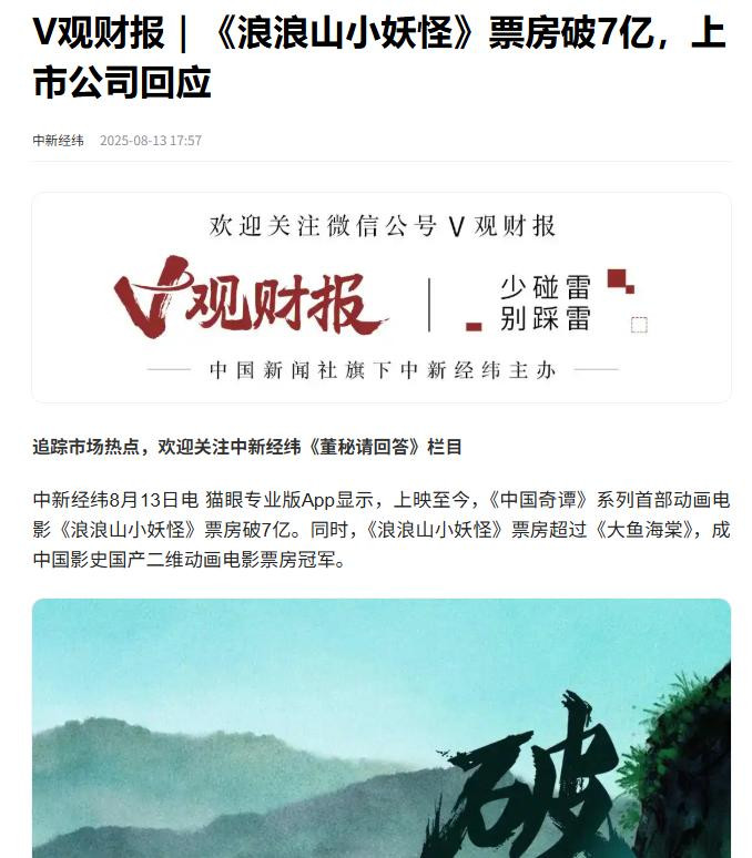 就在昨天,《浪浪山小妖怪》票房破7亿,成为了影史上国产二维动画票房冠军。